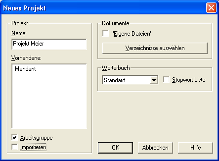 Die Business-Lizenz erlaubt es, den neu zu erstellenden Index durch Anklicken des Kästchens »Arbeitsgruppe« als sogenannten Arbeitsgruppen-Index auf einem externen Laufwerk abzulegen und somit anderen Benutzern in einem Netzwerk zur Verfügung zu stellen. Diese können darauf über einen lokal abgespeicherten Indexnamen (z.B. »Index Meier«), der auf den externe Arbeitsgruppen-Index (z.B. »Arbeitsgruppe Meier«) verweist, zugreifen.