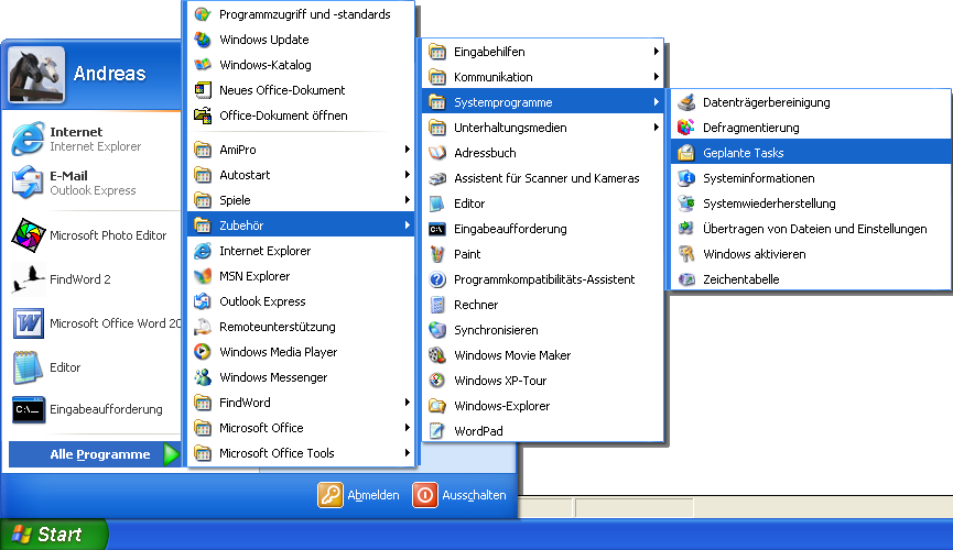 Start -> Programme -> Zubehör -> Systemprogramme -> Geplante Vorgänge